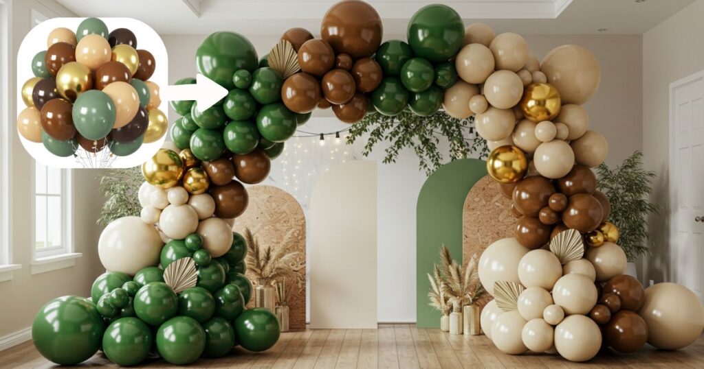 - Balloon Arches and Garlands: Create an organic-style arch or garland using a mix of these colors in different sizes. Add greenery or fairy lights for extra flair.